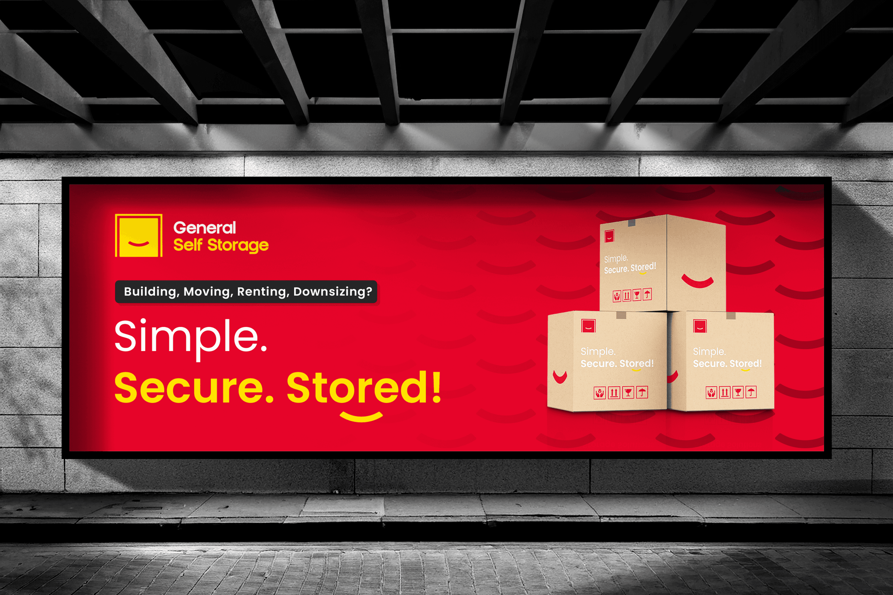 The challenge was to create a bold and modern self-storage brand that stands out in the competitive Gold Coast market. The client required a red and yellow color scheme to differentiate from competitors, while the brand needed to remain approachable, affordable, and highly recognizable. The key was to balance these constraints with a fresh and engaging identity. The concept was built around the simplicity of a box—symbolizing security, space, and organization—while injecting a touch of personality. A smile was subtly integrated into the design, making the brand feel welcoming, cheerful, and customer-friendly. This simple yet powerful icon transforms storage from a functional necessity into a positive experience. The result is a brand that is both visually striking and highly adaptable, ensuring strong recognition in the market while conveying trust, affordability, and ease.