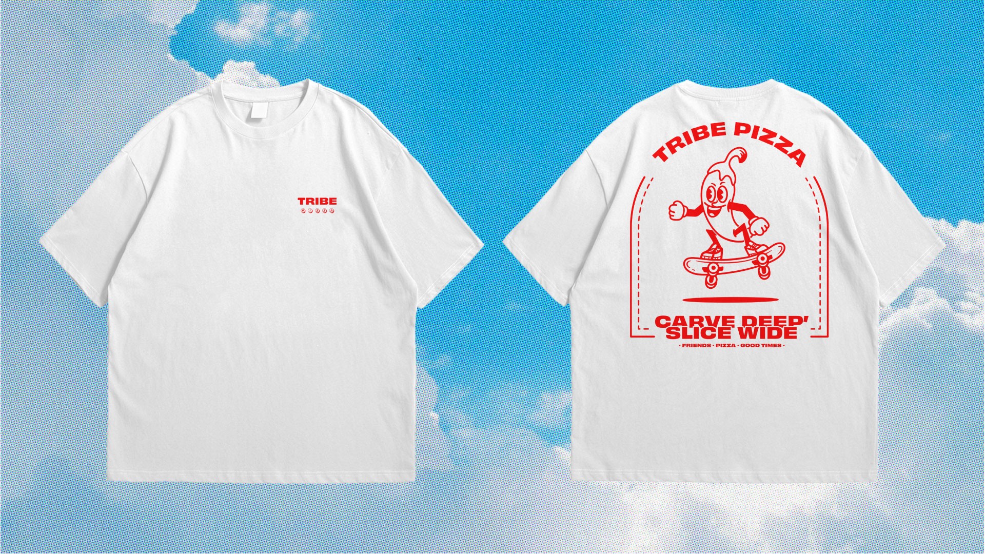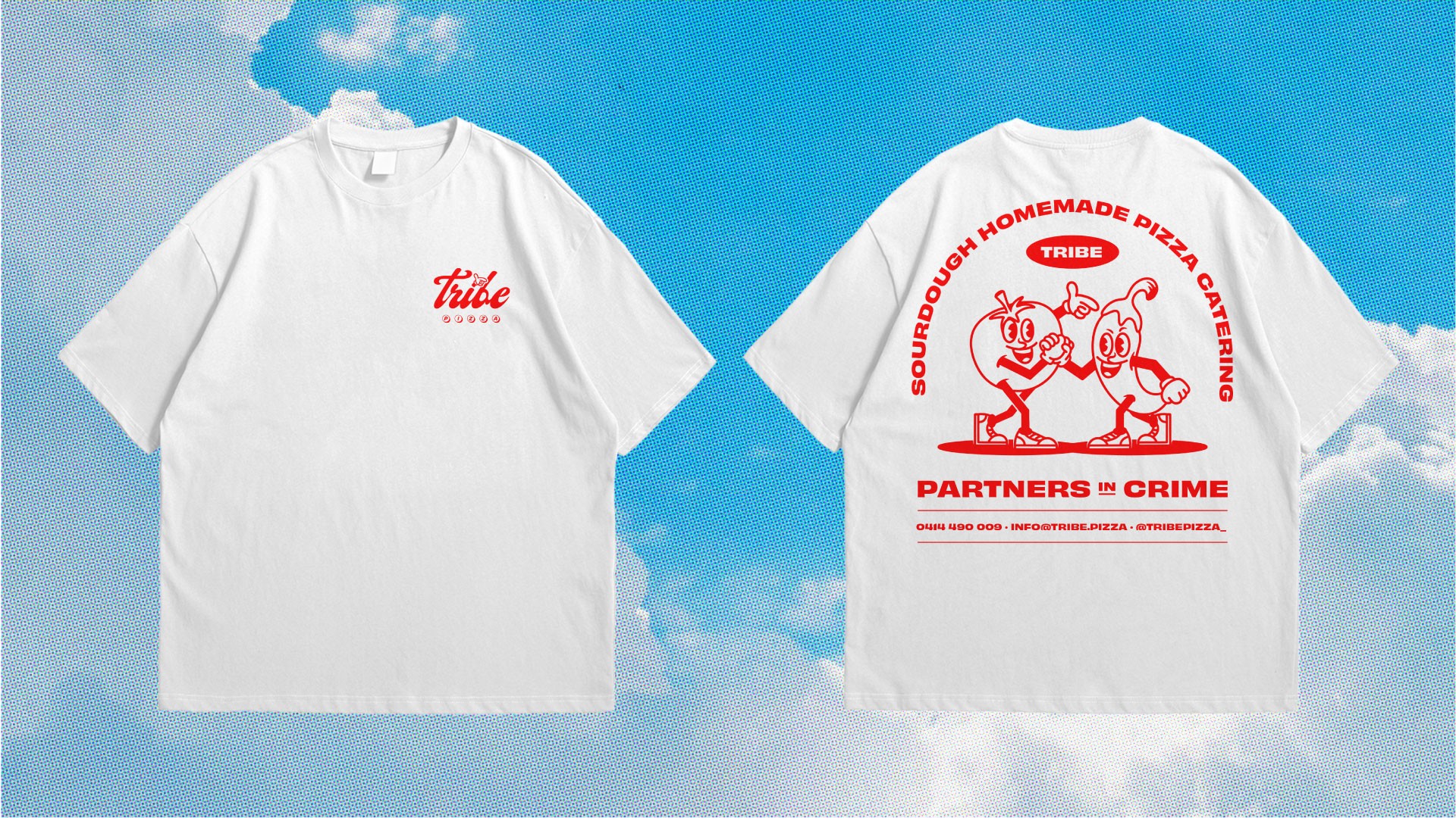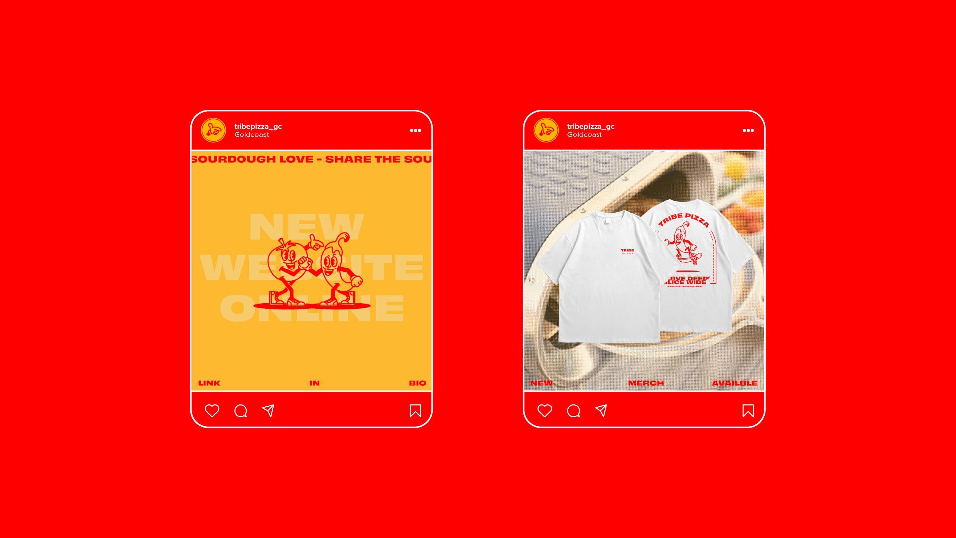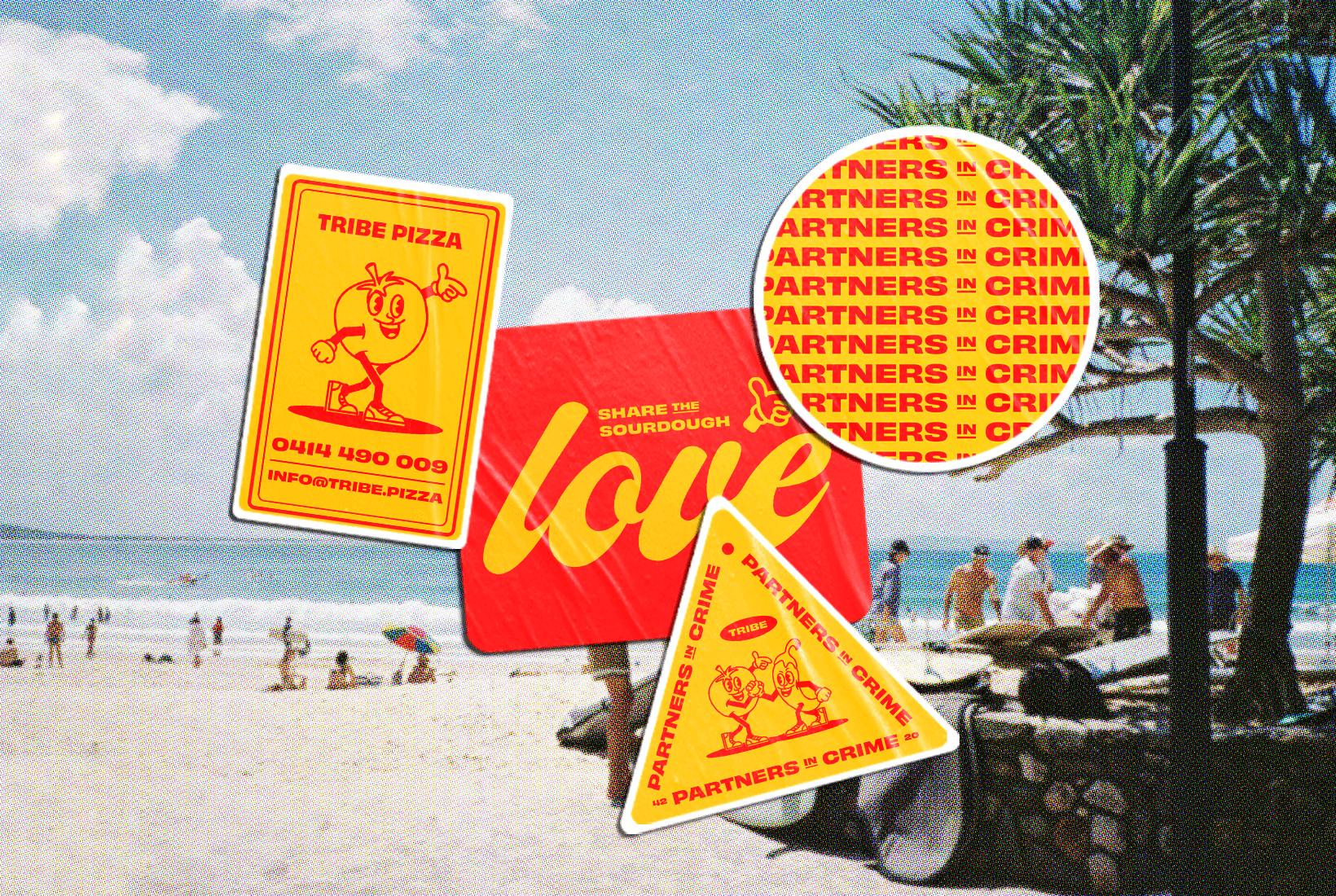 The challenge was to bring to life a lifelong dream project that would authentically encapsulate and reflect the influence of the owner. The brand idea was to create a brand that represent Joao, the owner, his vibe and his Brazilian heritage through playful and colorful branding and mascots fused with a surfy and vintage vibe. More than just selling pizza, the brand aimed to evoke a particular ambiance — a moment to gather with your tribe around the traditional sourdough pizza. From the useo f hard shadow grainy halftone pictures to vibrant social media tiles, the Tribe branding embodies the laid-back surf vibe of the Gold Coast, a wood fire baked pizza to be shared with friends after a cheeky surf sesh.